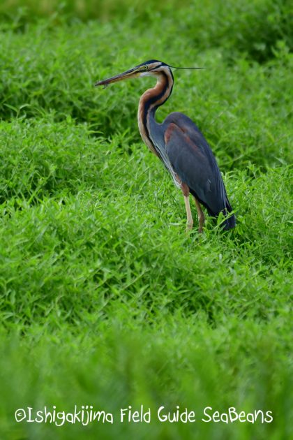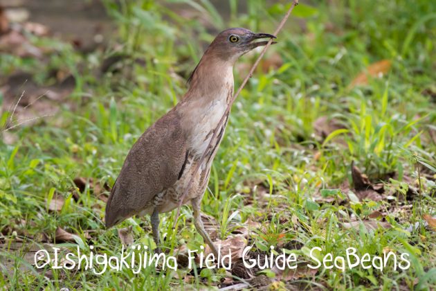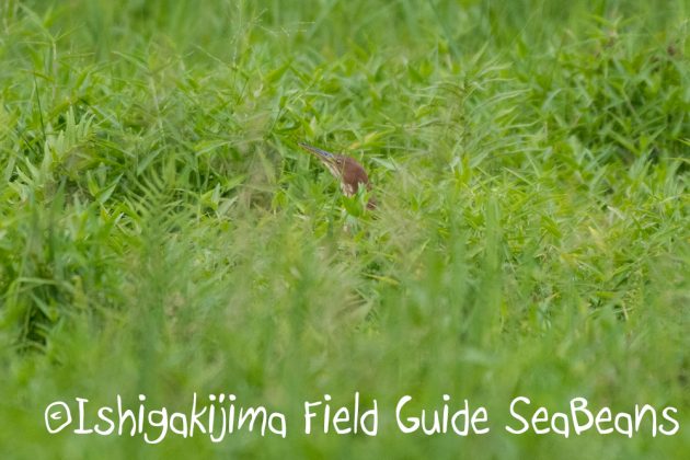 草むらから顔だけ出したリュウキュウヨシゴイ雌。