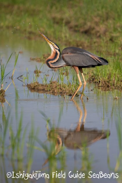 水を飲むムラサキサギ。