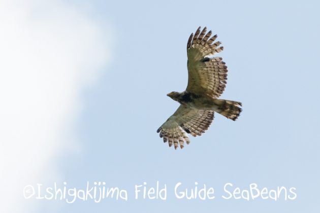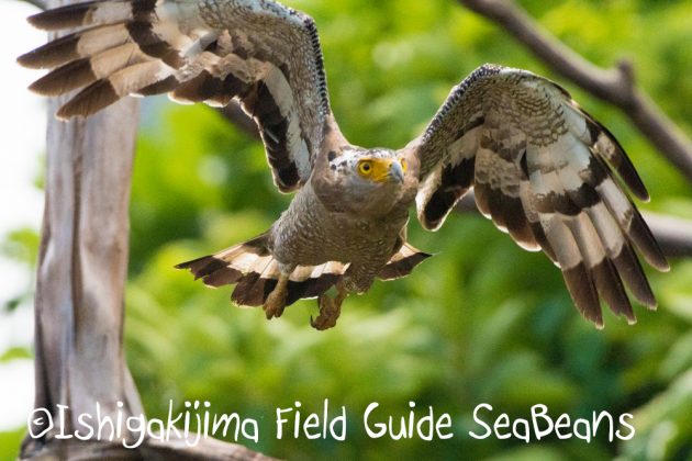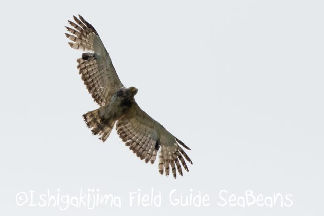 上空を気持ち良さそうに飛ぶ、昨年生まれのカンムリワシ若。