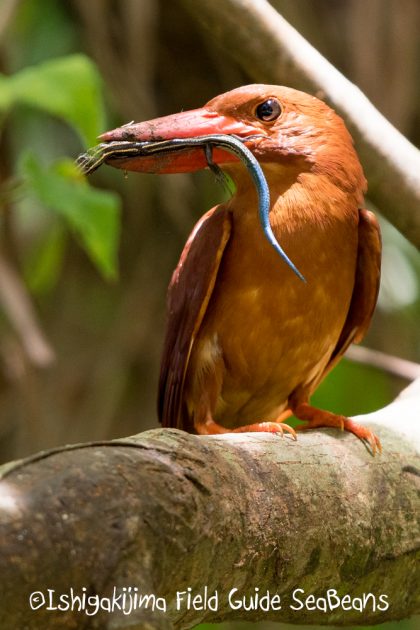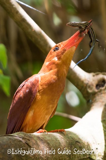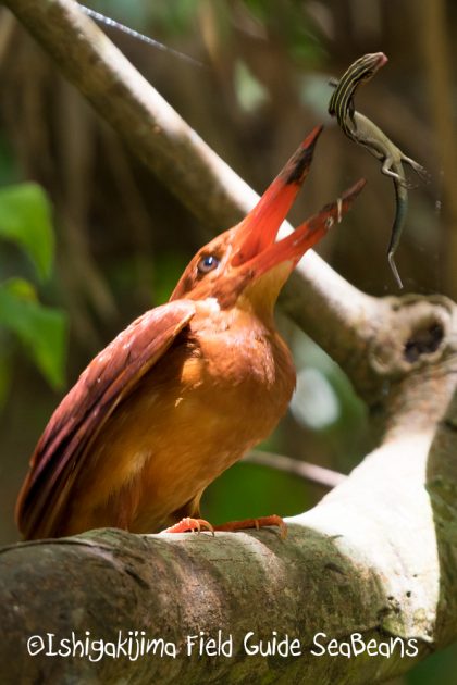 イシガキトカゲを捕獲したリュウキュウアカショウビン!!