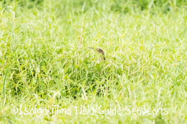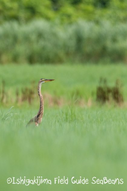草むらから顔だけ出すリュウキュウヨシゴイ。