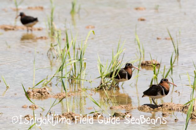 水が張られた田んぼにはシギチがパラパラって感じで渡来しています。