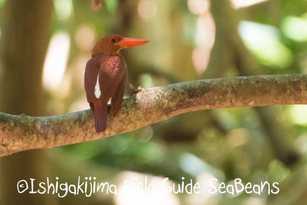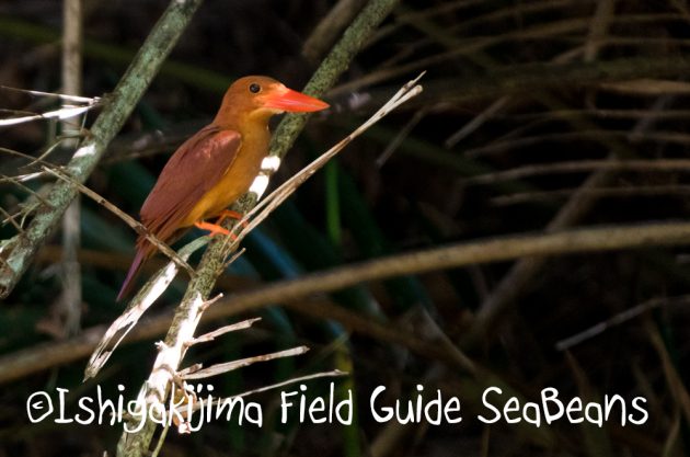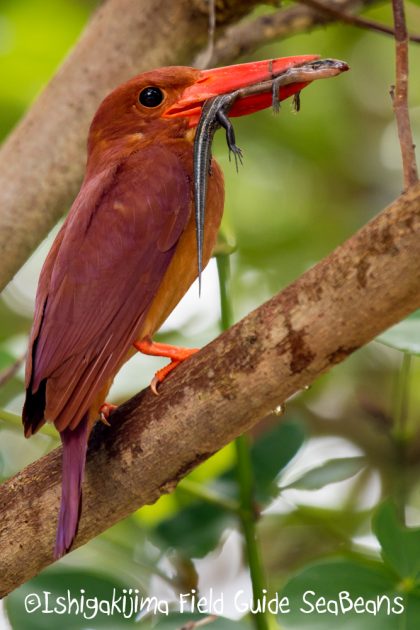 イシガキトカゲを咥えたリュウキュウアカショウビン。