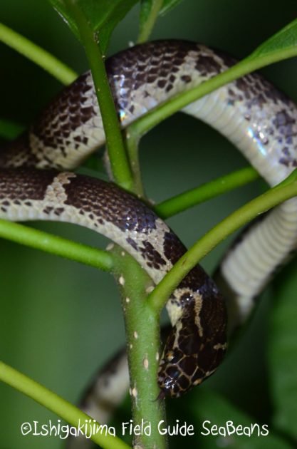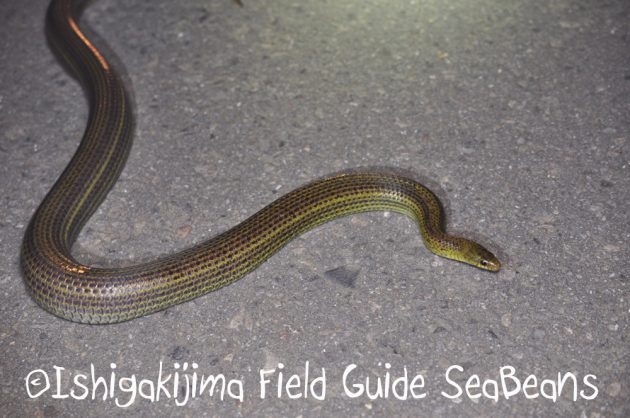 何かを捕食した様子のサキシマアオヘビ。
