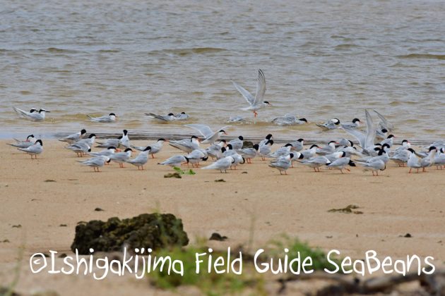 エリグロアジサシと沢山のベニアジサシが水浴び中でした。