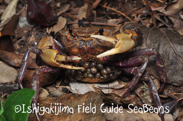 卵を抱えたヤエヤマヤマガニ。