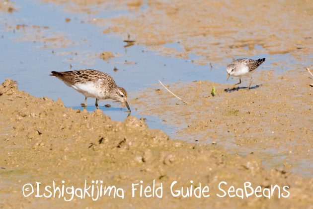 ウズラシギとヒバリシギ。