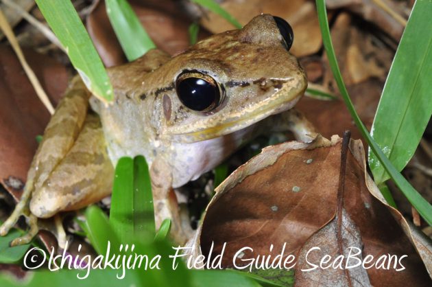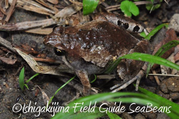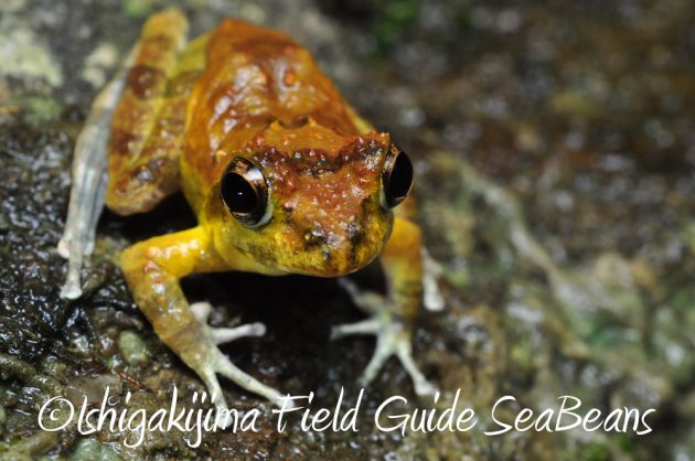 ヒメアマガエルを捕食するヤエヤマイシガメ。