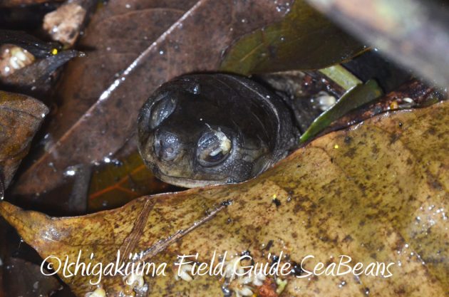 落ち葉の隙間からヤエヤマイシガメ。
