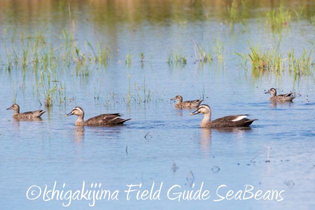 飛び去るカルガモの群れの中にシマアジを発見!!