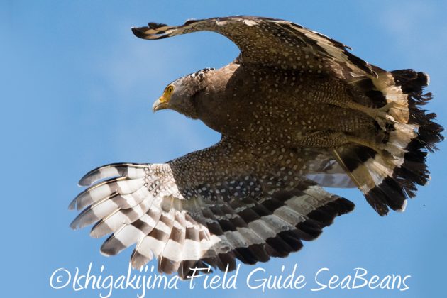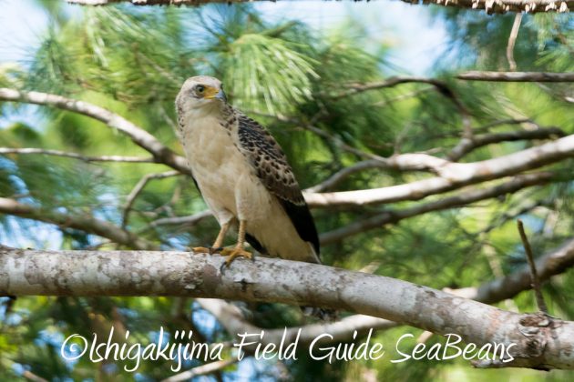 カンムリワシ幼鳥に出会えましたが、警戒心がとても強いのでフロントガラス越しに撮影。