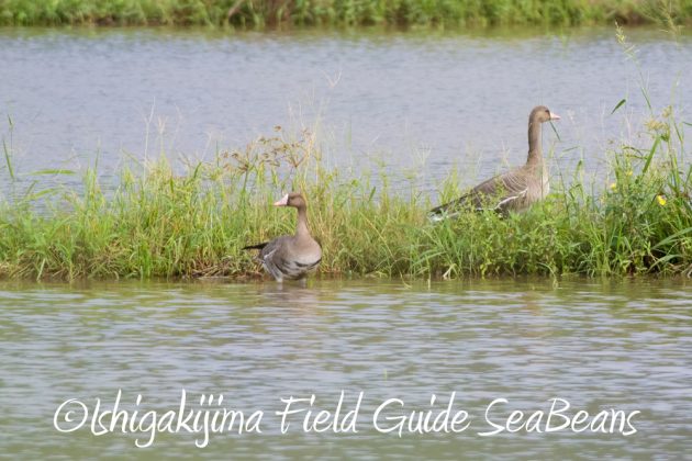 今期初観察のマガンが2羽渡来していました。