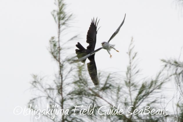 カタグロトビ、今日もオサハシブトガラスともめていました。