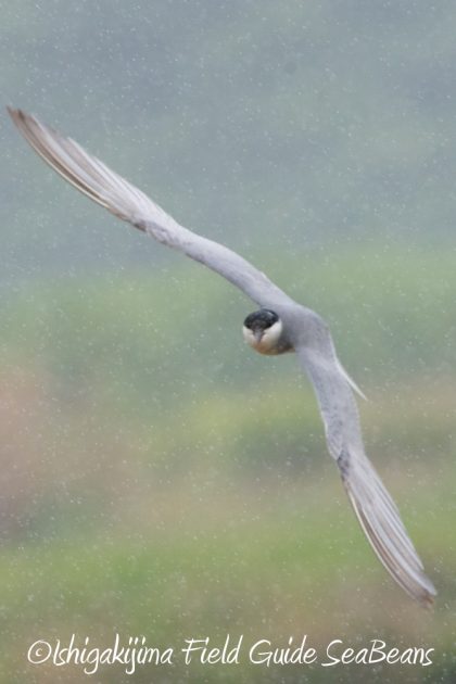 大雨の中、餌を求めて飛ぶクロハラアジサシ。