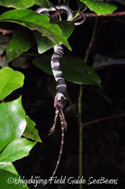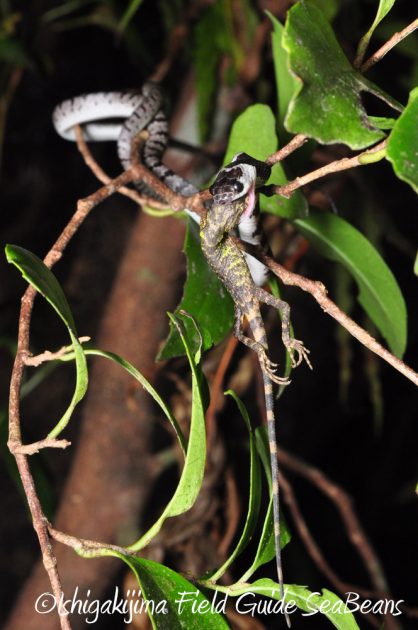 サキシマバイカダ幼蛇がサキシマキノボリトカゲを捕食していました!!