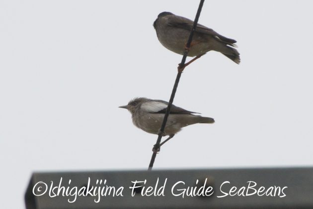ムクドリの群れの中に1羽だけカラムクドリ雄を観察。