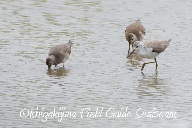 キアシシギ、アカアシシギ、コアオアシシギ。