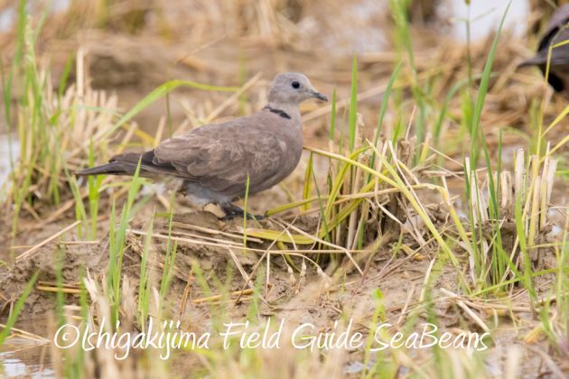 広い耕作地に100羽以上のリュウキュウキジバトが降り立っていました。
