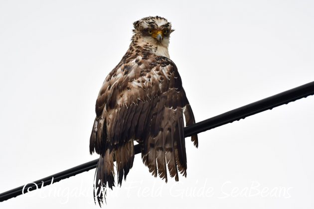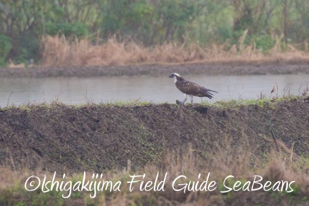 強い雨が降る中、ミサゴが畔で魚を食べていました。