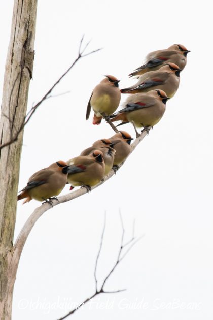 お客さんから連絡をいただきヒレンジャク20羽の群れに出会えました。
