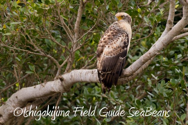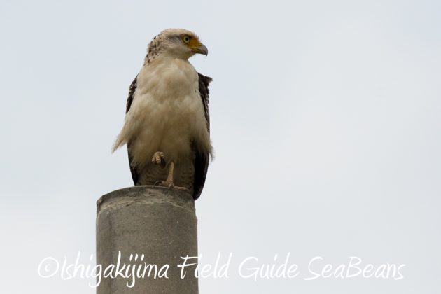 周囲でカンムリワシ成鳥が縄張り鳴きをしているのに平気な顔で電柱上で休んでいました。
