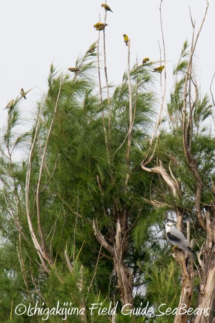 カタグロトビが止まっている木にマヒワの群れが!!