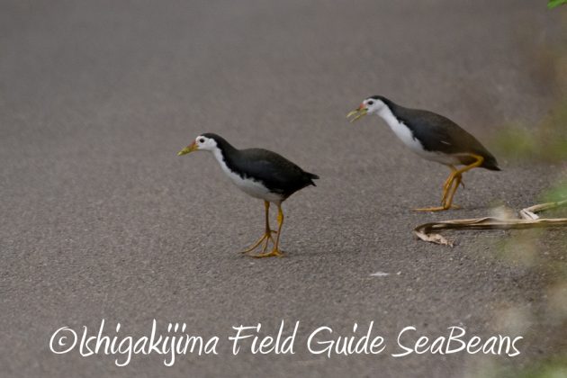 頭は成鳥、体は幼鳥のズグロミゾゴイ。