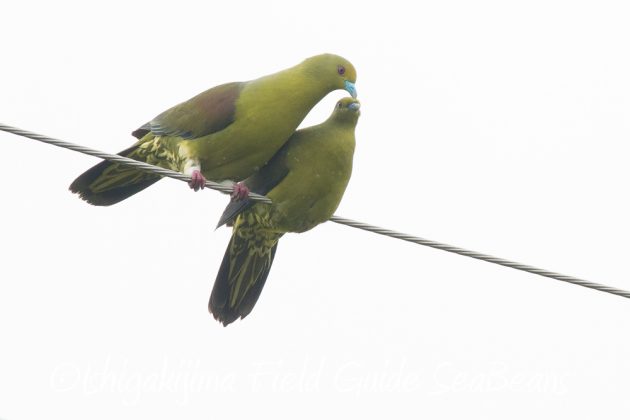 チュウダイズアカアオバト夫婦がイチャイチャしていました。