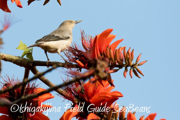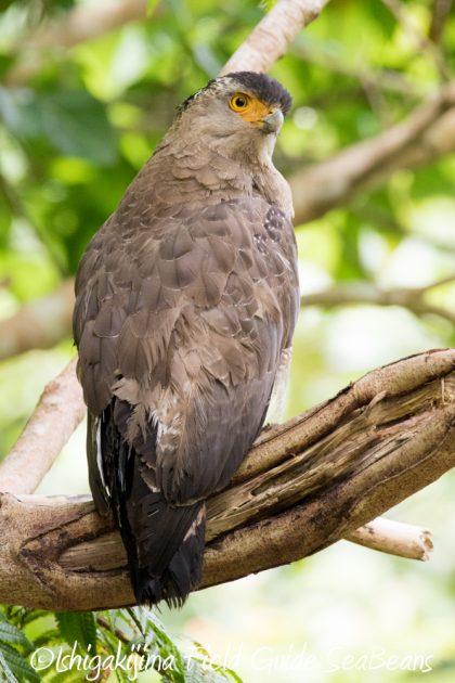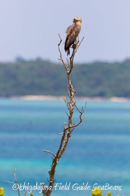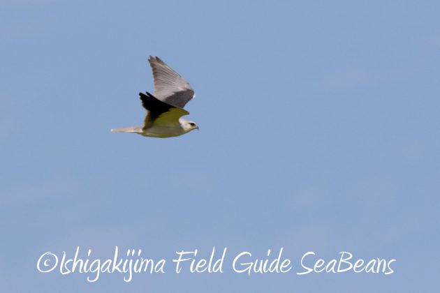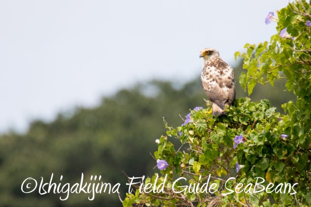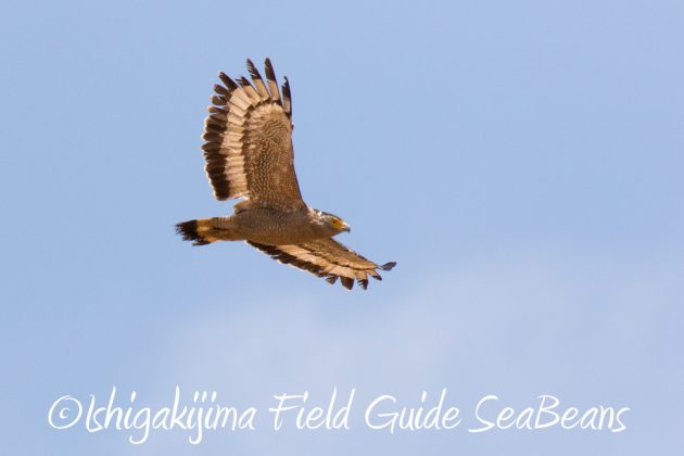 縄張り鳴きをしながら旋回中のカンムリワシ。