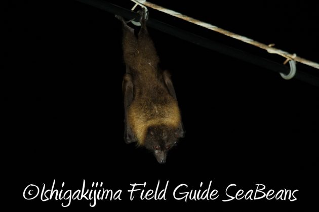 電線にヤエヤマオオコウモリ。