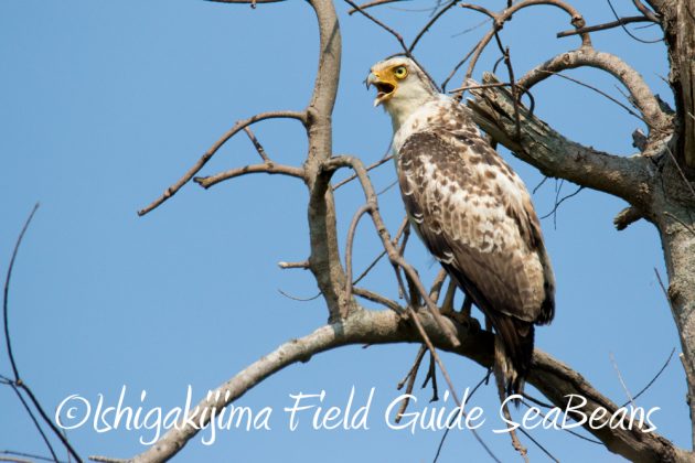 激しく縄張り鳴きをするカンムリワシ幼鳥。