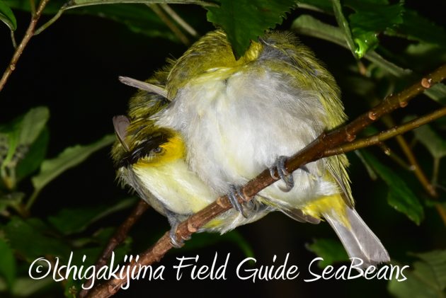 リュウキュウメジロ2羽が寄り添って寝ていました。