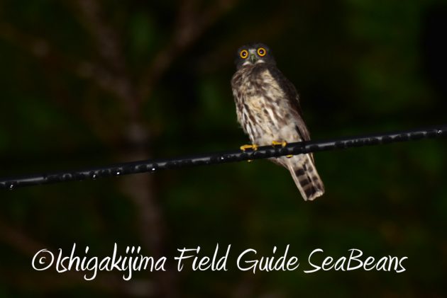 電線に止まっていたリュウキュウアオバズク幼鳥。
