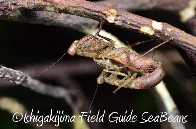 交尾中のヒナカマキリに出会えました。
