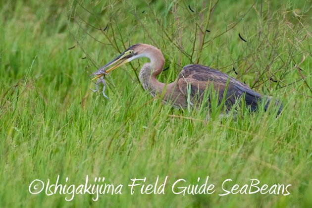 ムラサキサギがサキシマヌマガエルを捕獲!!