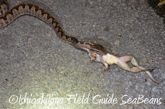 サキシマハブがサキシマヌマガエルを捕食していました!!