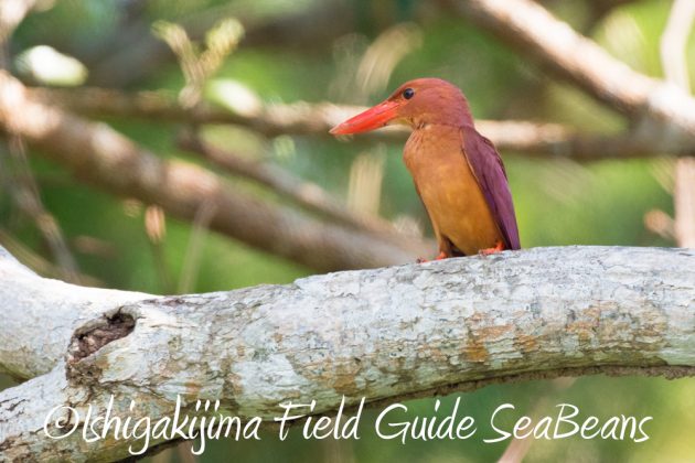 リュウキュウアカショウビンが明るい枝に止まって居ました。