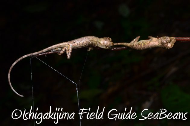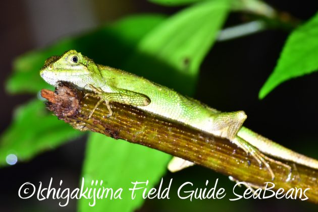 幼いサキシマキノボリトカゲ2匹が仲良く一緒に寝て居ました。