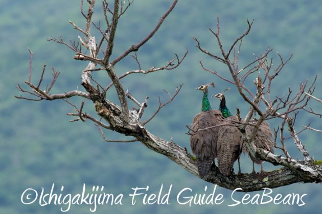 良い枝にインドクジャク3羽が仲良く止まって居ました。