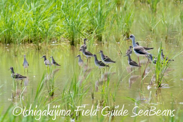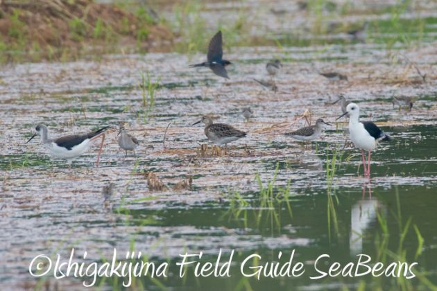 ツバメ、セイタカシギ、ヒバリシギ、タカブシギ、エリマキシギなどなど。