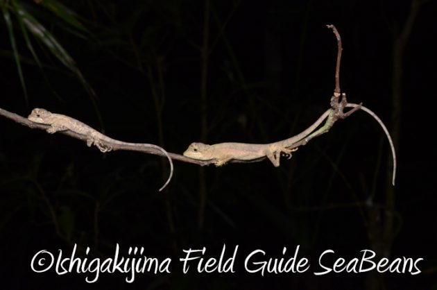 2匹のサキシマキノボリトカゲが連なって寝ていました。