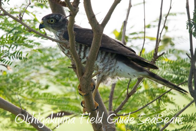 目の前の枝にリュウキュウツミ。