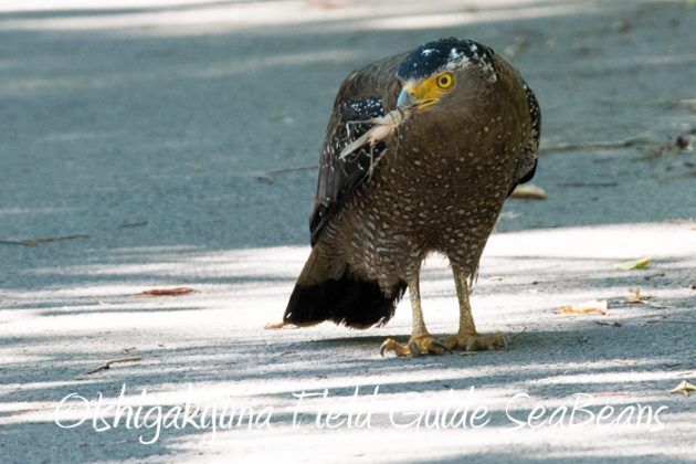 大きなタイワンクツワムシを捕食中のカンムリワシ。