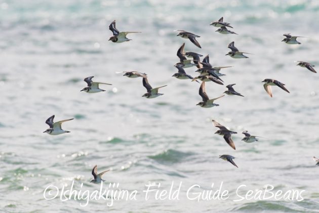 オオメダイチドリ、メダイチドリ、シロチドリ、キョウジョシギなどなどの飛翔。