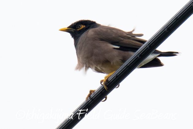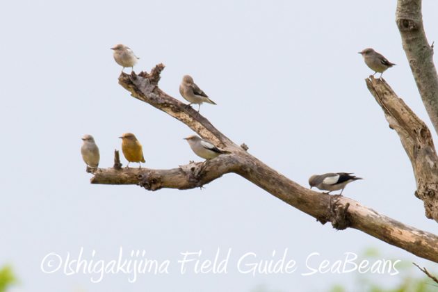 カラムクドリ群れの中に1羽だけオレンジ色のカラムクドリが居ました。