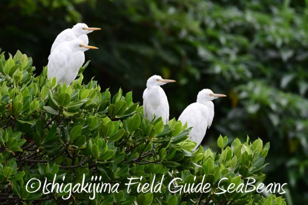 ヤエヤマヒルギの上で羽を休めるアマサギたち。