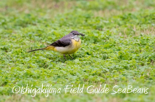 羽虫を捕らえたキセキレイ。