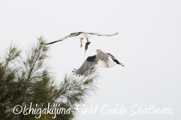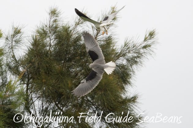 クロサギ白色型2羽と黒色型2羽が一緒に飛翔していました。