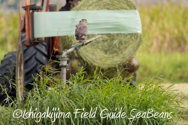 大型機械が目の前で動いているのに、まったく動じないカンムリワシ。