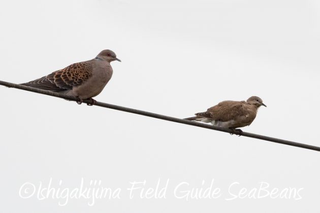 リュウキュウキジバトとベニバト雌。
